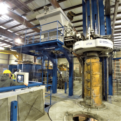 Afinitas brand HawkeyePedershaab’s ePak machine series is unmatched in packerhead production technology. For example, ePak’s revolutionary eDrive generates more power with greater control than comparable machines to manufacture high quality concrete pipe. In addition, ePak’s unique uniframe design makes conventional three and four post frame designs obsolete and delivers smoother and faster operation of all machine components. Plus, the frame’s bolted, two-piece construction makes installation into existing buildings easier and lowers shipping costs.