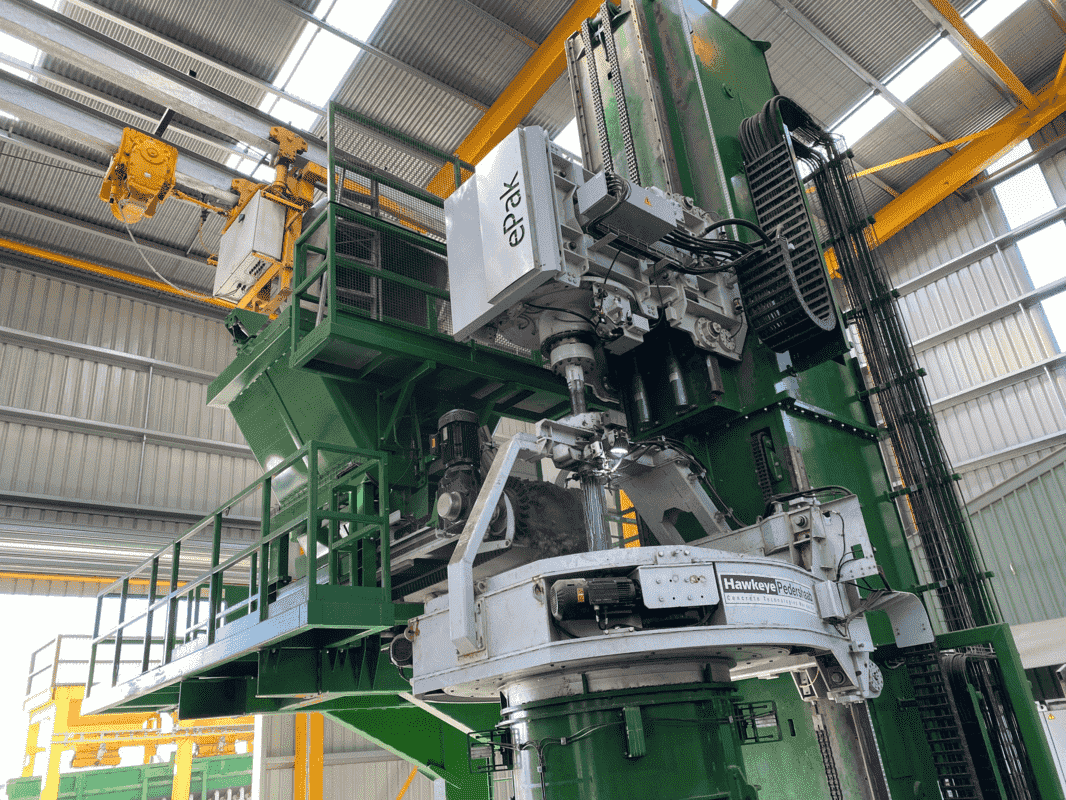 Afinitas brand HawkeyePedershaab’s ePak machine series is unmatched in packerhead production technology. For example, ePak’s revolutionary eDrive generates more power with greater control than comparable machines to manufacture high quality concrete pipe. In addition, ePak’s unique uniframe design makes conventional three and four post frame designs obsolete and delivers smoother and faster operation of all machine components. Plus, the frame’s bolted, two-piece construction makes installation into existing buildings easier and lowers shipping costs.