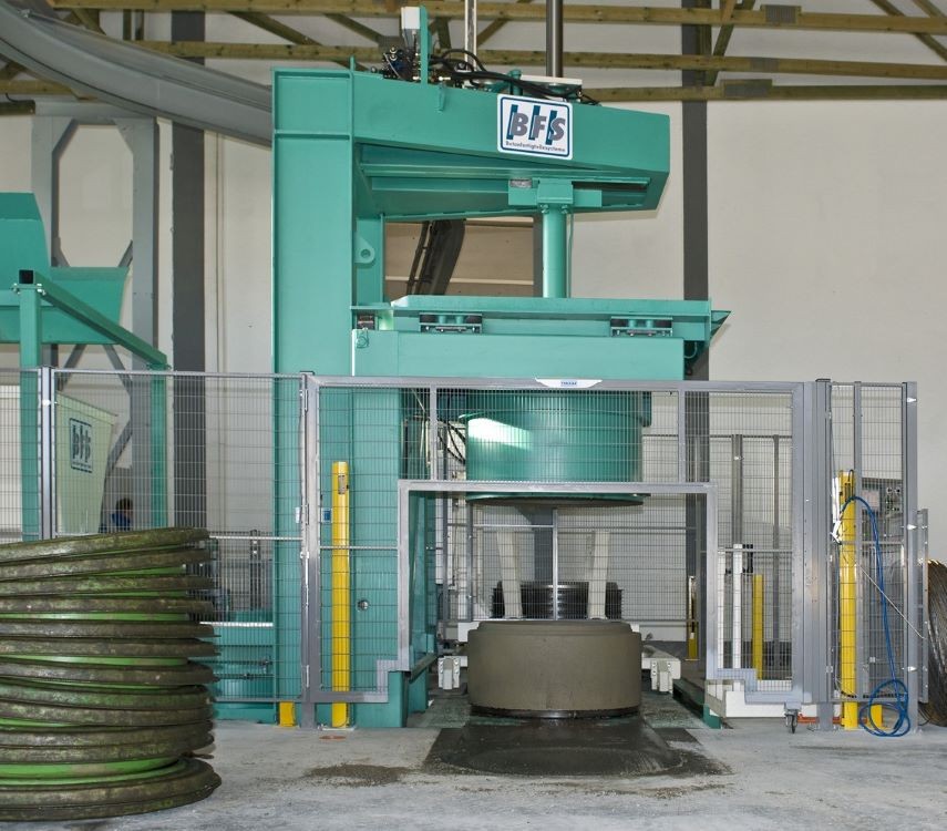 - After demolding, the products can be automatically transported out of the production machine for curing with a computer-operated BFS ROBOTRAC system or by the agile BFS electric trolley.