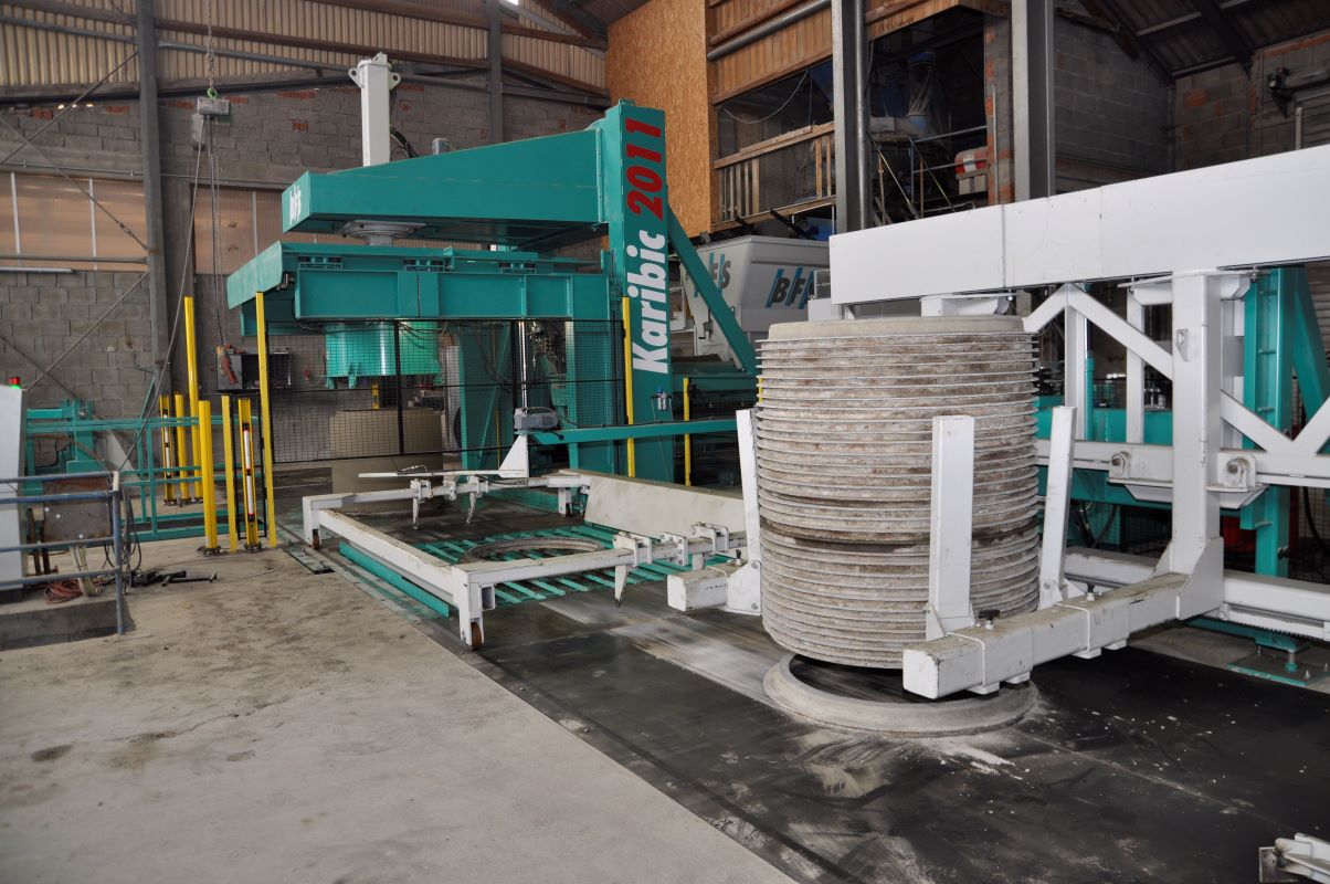 - From the base pallet magazine, the Karibic pusher system moves one pallet to the release agent spraying station and then into the concrete casting position.