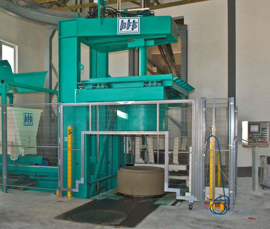 - Concrete compaction is performed by a central vibrator with hydraulic mold core clamping. The frequency-controlled direct drive is powered by dynamic electric motors with a large RPM range. BFS technology ensures a maximum application of vibration forces to the mold equipment with minimum noise.