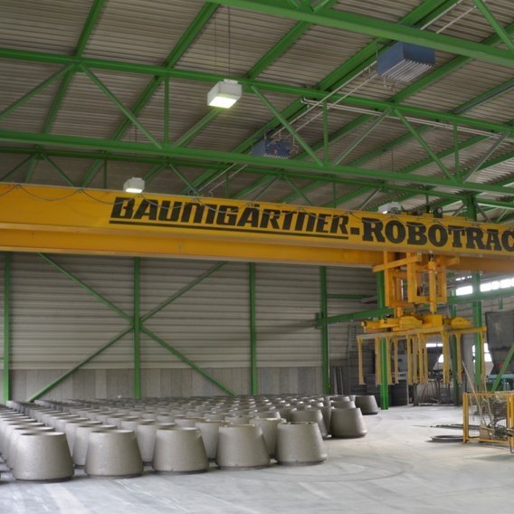 - After demolding, the products can be automatically transported out of the production machine for curing with a computer-operated BFS ROBOTRAC system or by the agile BFS electric trolley.