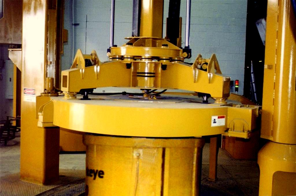 - The presshead presses the tongue former to form the spigot, trowels the joint surface, and returns to the home position for the next pipe.