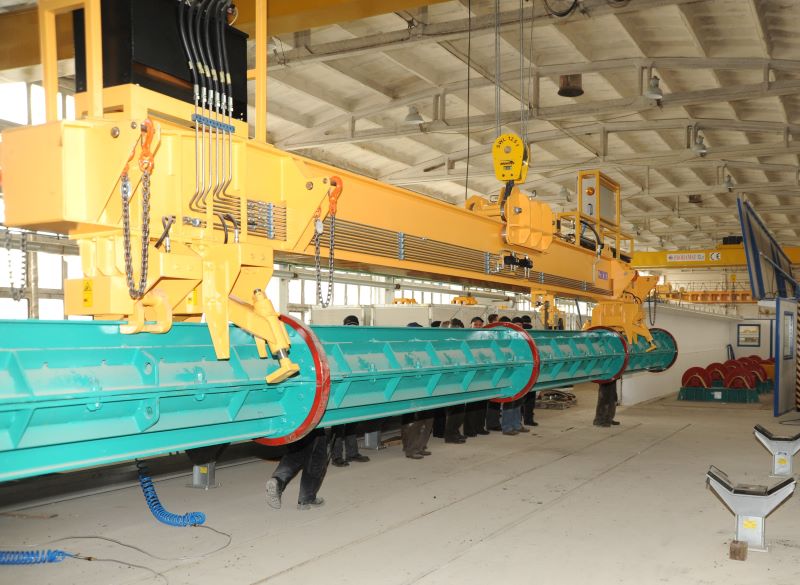Sizes of piles up to 800 mm diameter use the same equipment shown for poles production. Particular designed equipment are suitable to cover the production process of larger sizes (up to 2000 mm diameter).
