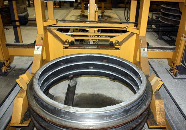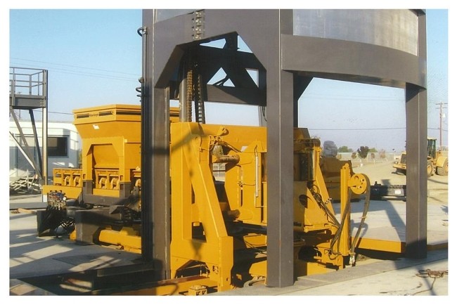 - Concrete products can be offborne from the machine with an automatic or conventional overhead crane.