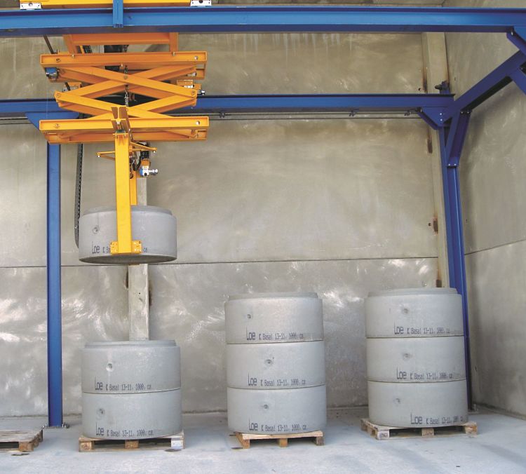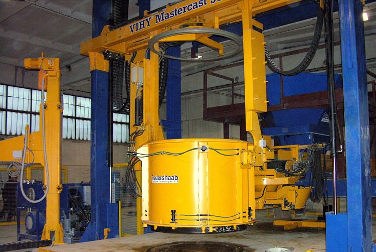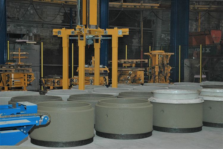 Afinitas offers high throughput production with the HawkeyePedershaab VIHY Mastercast manhole machine. With Mastercast you can mass-produce concrete manhole risers, cones and bases up to 1200mm (48″) in diameter by 1.2m long (4′). In addition, the VIHY table vibration system allows for the optimal production of special, non-round concrete products such as street gullies, catch basins, grade rings and slab products. Mastercast is designed to run either as a stand-alone, automatic production machine or within the context of a fully automatic production plant.
