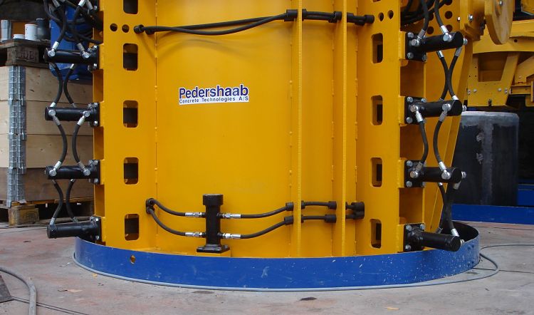 - The concrete’s top surface is automatically finished off by a hydraulic press.