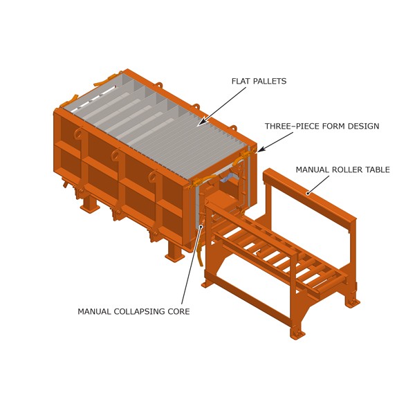Battery grade ring forms include a form, core and flat pallets designed to the customer’s specifications.