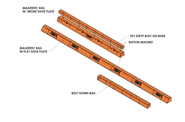 Magnetic Side Rail Systems are perfect for use with our flat casting tables. Magnetic side rails are an effective means for producing a multitude of products, including walls and slabs while extending form life (eliminating bolt holes or welding form work in place). They provide a flexible and durable means of locating rails to meet variable product needs.