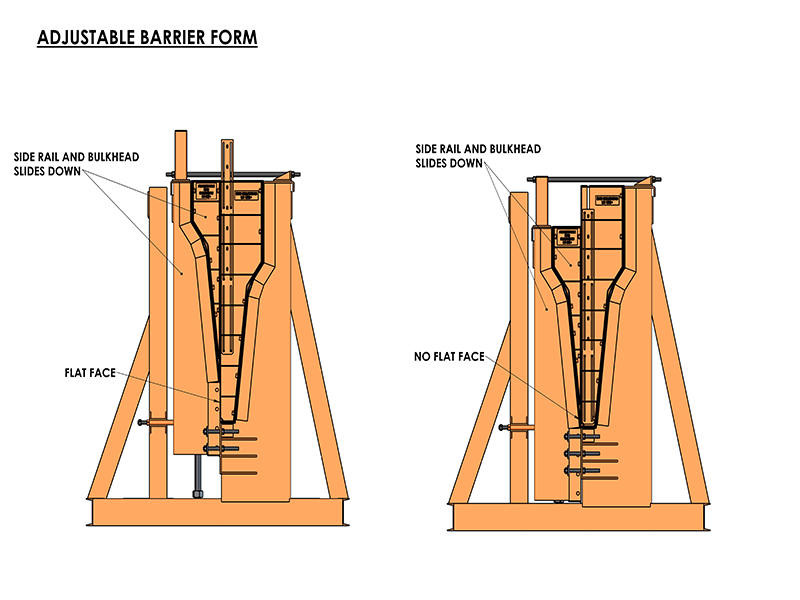 Precast concrete barriers and curbing forms are available in a variety of sizes and shapes to produce products for temporary or permanent vehicular and transportation construction. The forms are engineered to meet all DOT and Manual for Accessing Safety Hardware (MASH) requirements. Rugged steel construction provides proper stability and rigidity to prevent distortion. Form design ensures finished barrier conforms to required dimensions and contours. All sharp corners are chamfered. Suitable for industrial and commercial applications.